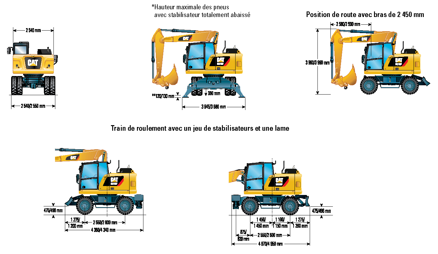 La pelle sur pneus M315 2D est équipée d'un moteur CAT fiable, de commandes intuitives et de caractéristiques de sécurité avancées. Elle offre une grande mobilité sur les chantiers grâce à ses pneus. Elle peut être équipée de divers accessoires pour améliorer ses capacités. La cabine offre un espace confortable pour l'opérateur, favorisant ainsi la productivité.
